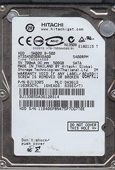 - Hitachi HTS545050B9SA00 500GB 5.4K RPM 1.5Gb/s 2.5" SATA Hard Drive 0A71945