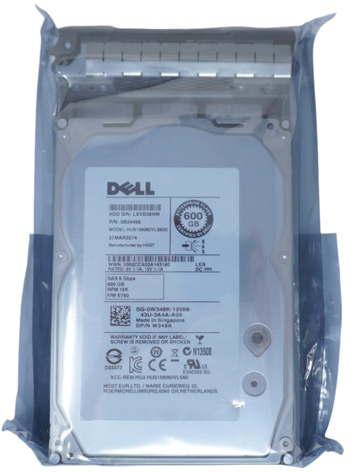 The Dell HUS156060VLS600 W348K is a 600GB 15k SAS (Serial Attached SCSI) hard drive designed for use in Dell PowerEdge servers or other compatible systems that support SAS hard drives.