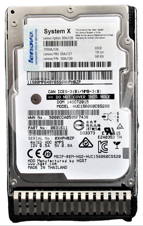 The IBM 00AJ127, 00AJ126, and 00AJ130 are 600GB 15,000 RPM 2.5-inch SAS hard drives built for IBM enterprise servers and storage systems. With a 6Gb/s SAS interface, these drives deliver ultra-fast data access and reliable performance for demanding applications such as virtualization, database management, and high-performance computing. The hot-swap design allows easy installation and replacement without disrupting server operations.