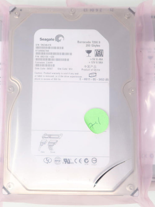 Seagate ST3200827AS 200GB 7200RPM 3.5" SATA 3Gb/s Hard Drive (9BD13E-620) -Refurbished