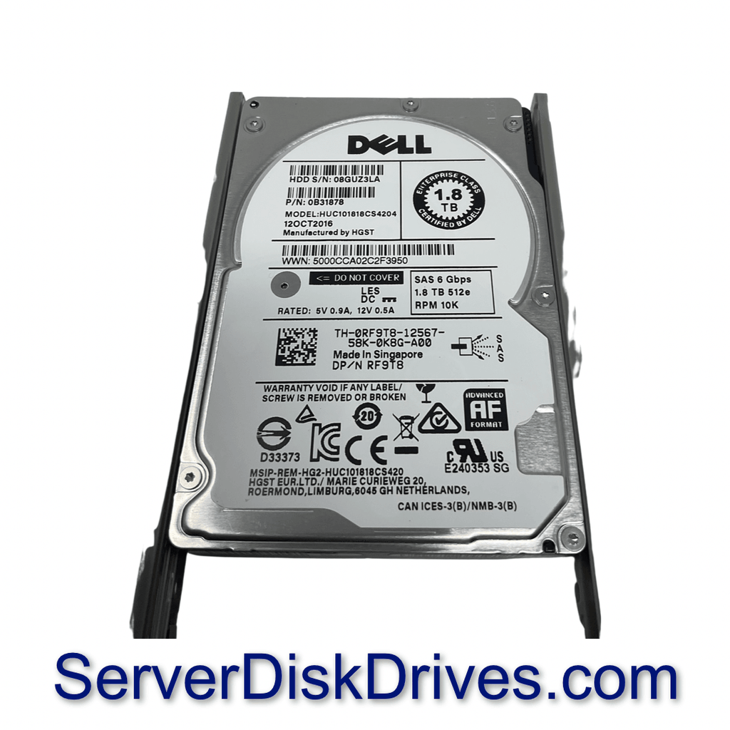 The Dell RF9T8 HUC101818CS4204 is a 1.8TB 6G 10K 2.5" SAS SFF hard drive. This hard drive is designed for use in Dell servers and storage systems that require high-performance, reliable storage in a small form factor.
