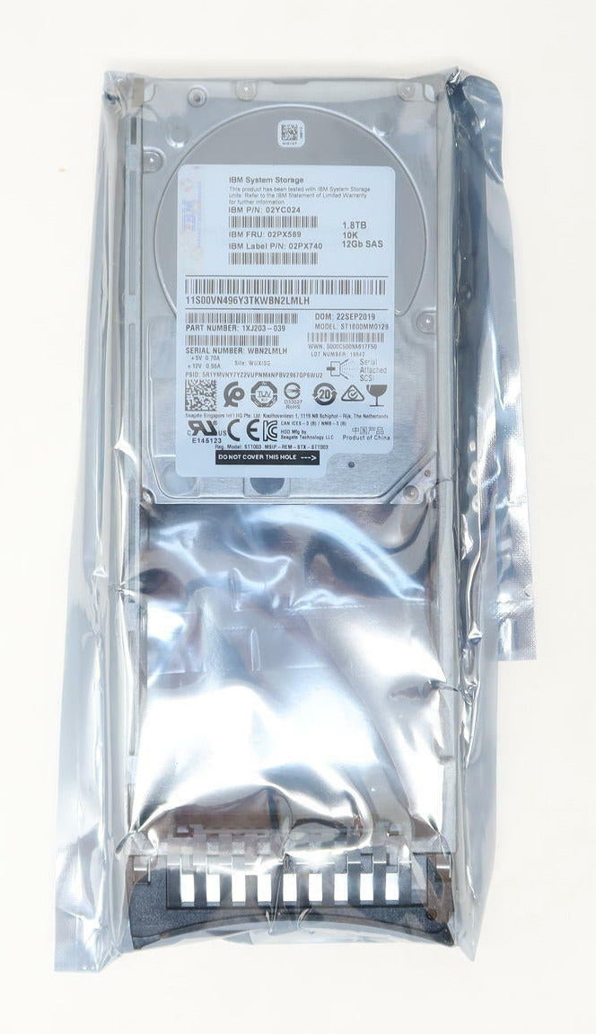 The IBM 02PX589, 02YC024, and 02PX740 are enterprise-class 1.8TB 2.5-inch SAS 4Kn hard drives designed for use with IBM/Lenovo Storwize V5030E and compatible storage systems. Featuring a 10,000 RPM spindle speed and 12Gbps SAS interface, this drive provides exceptional performance, reliability, and efficiency for mission-critical business applications and virtualized environments.